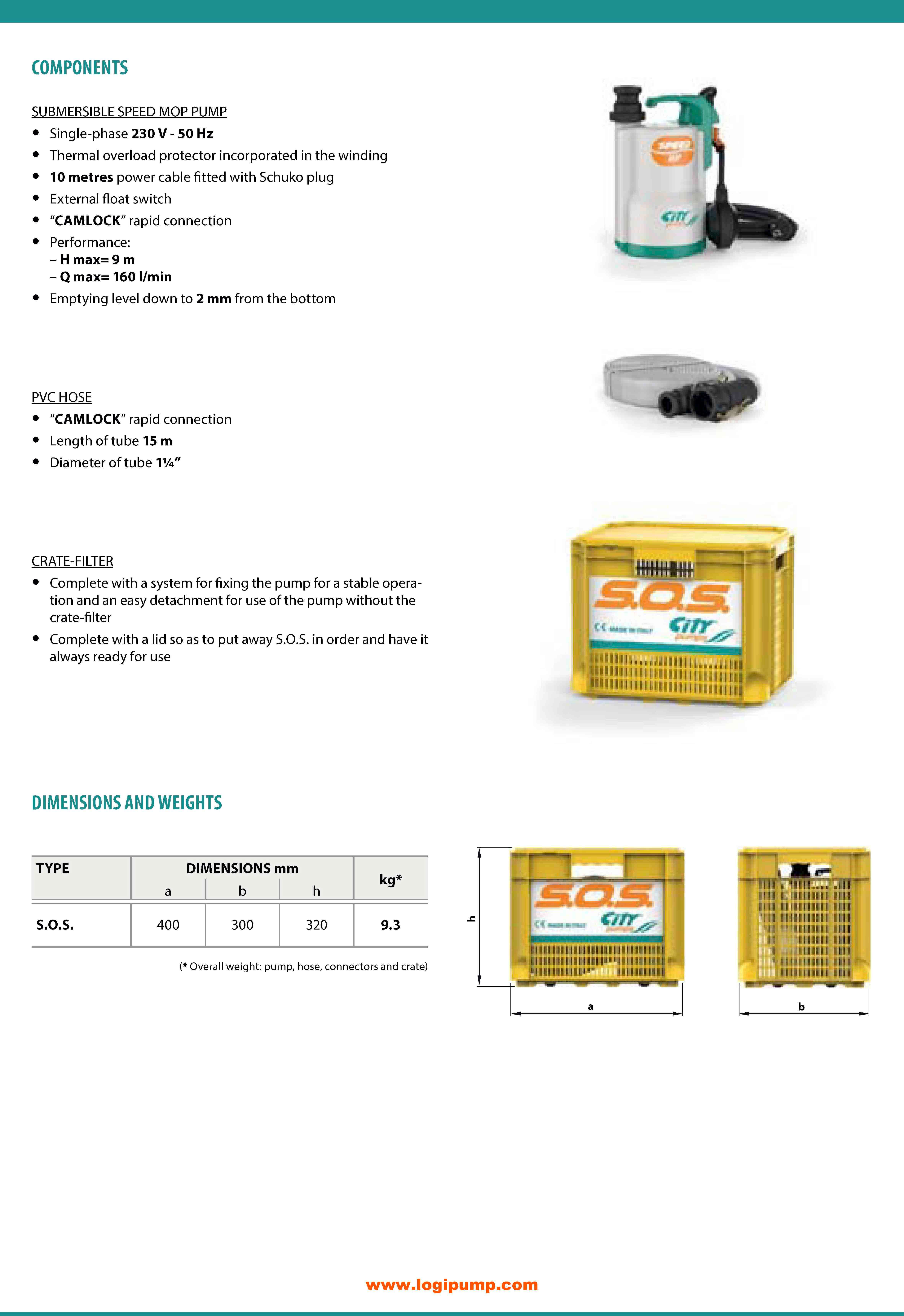 City Pumps S.O.S. Acil Sel Tahliye Kiti Dalgıç Pompa ve Aksesuarlarları kW - mSS (CTY_S.O.S.)
