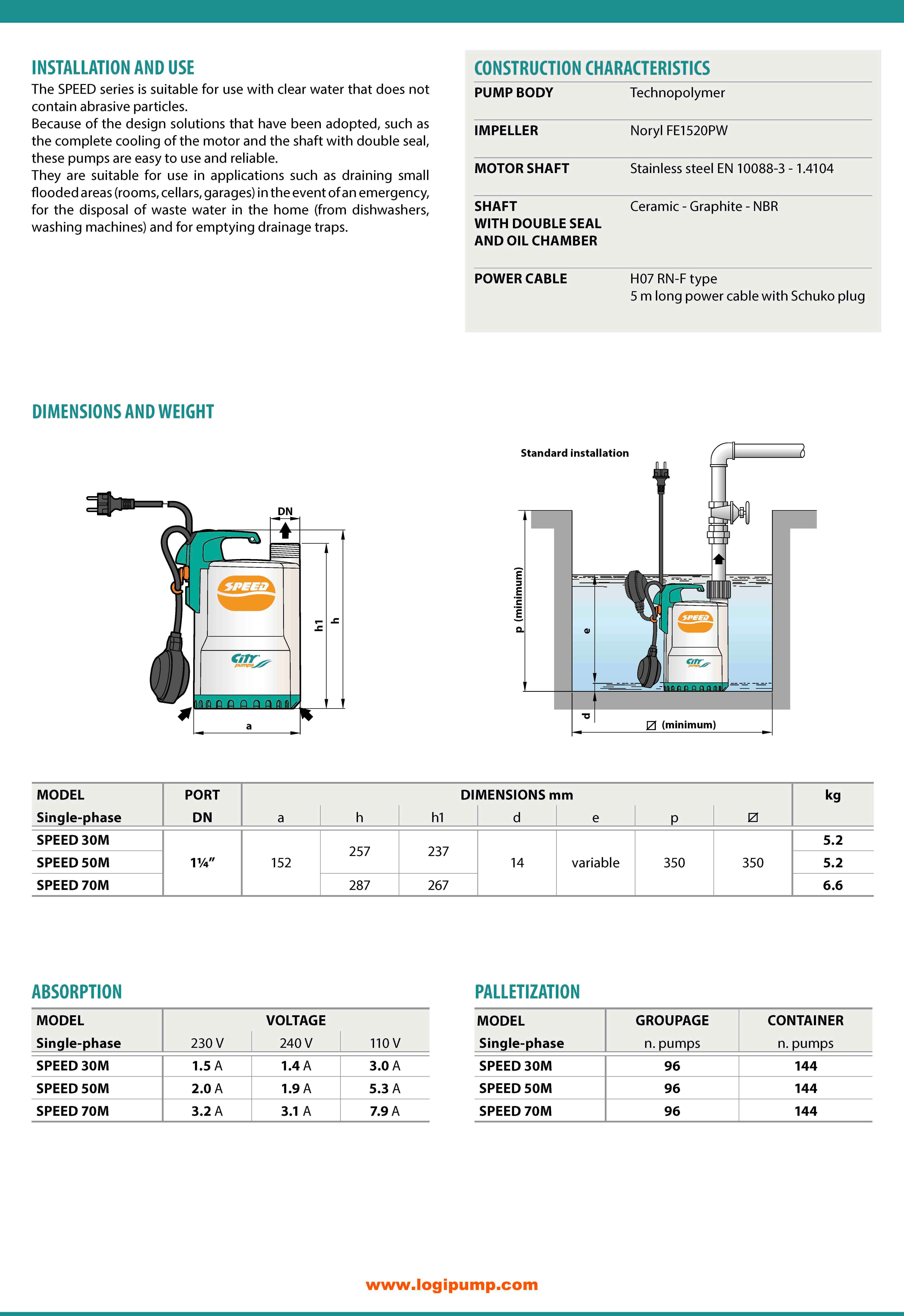 City Pumps SPEED 70M Dalgıç Drenaj Pompası Bodrum Sel Tahliyesi İçin 0.55 kW - 10.5 mSS (CTY_SPEED 70M)
