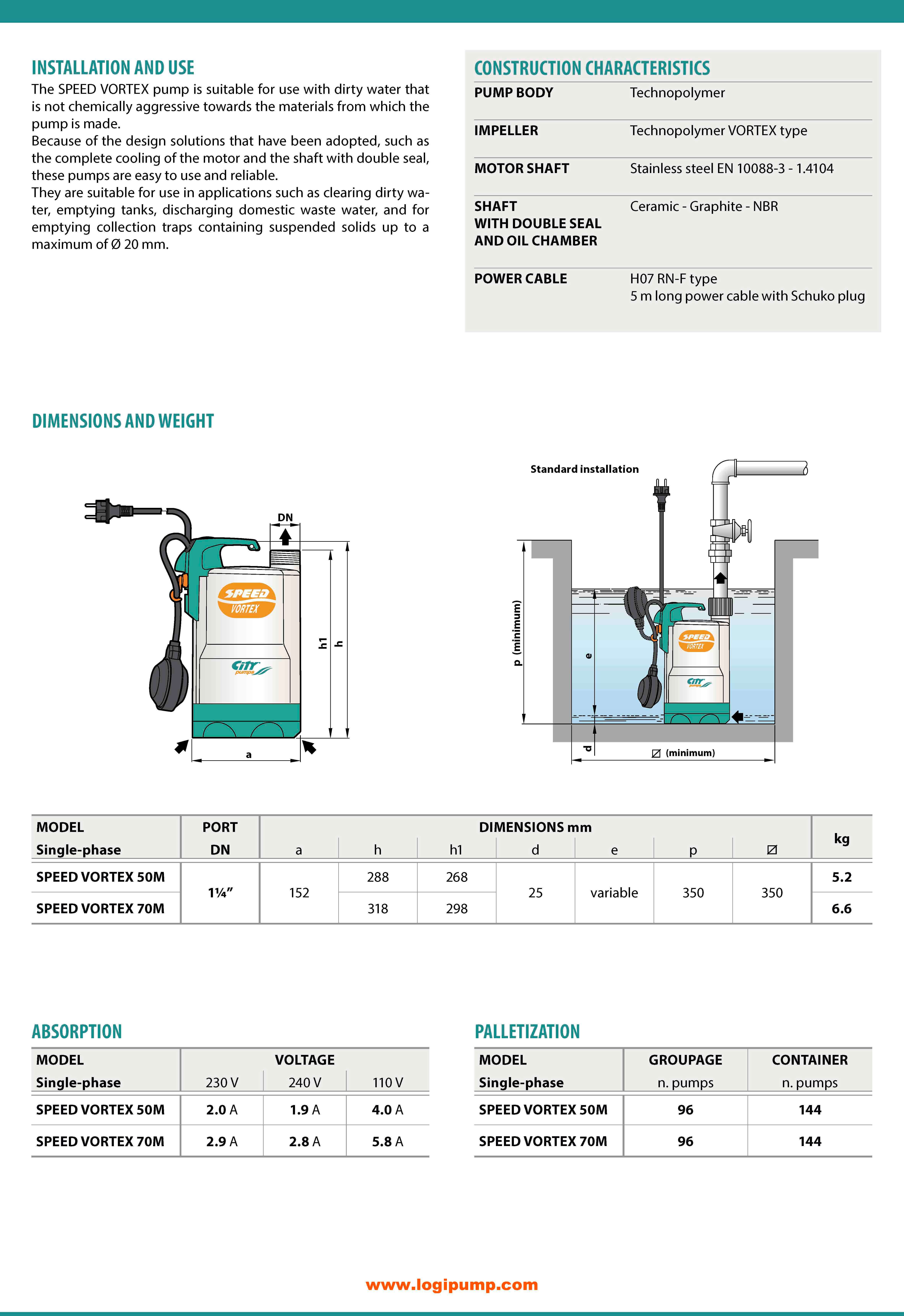 City Pumps SPEED VORTEX 70M Kirli Su Dalgıç Pompa Katı Parçacıklar İçin 0.55 kW - 8.5 mSS (CTY_SPEED VORTEX 70M)
