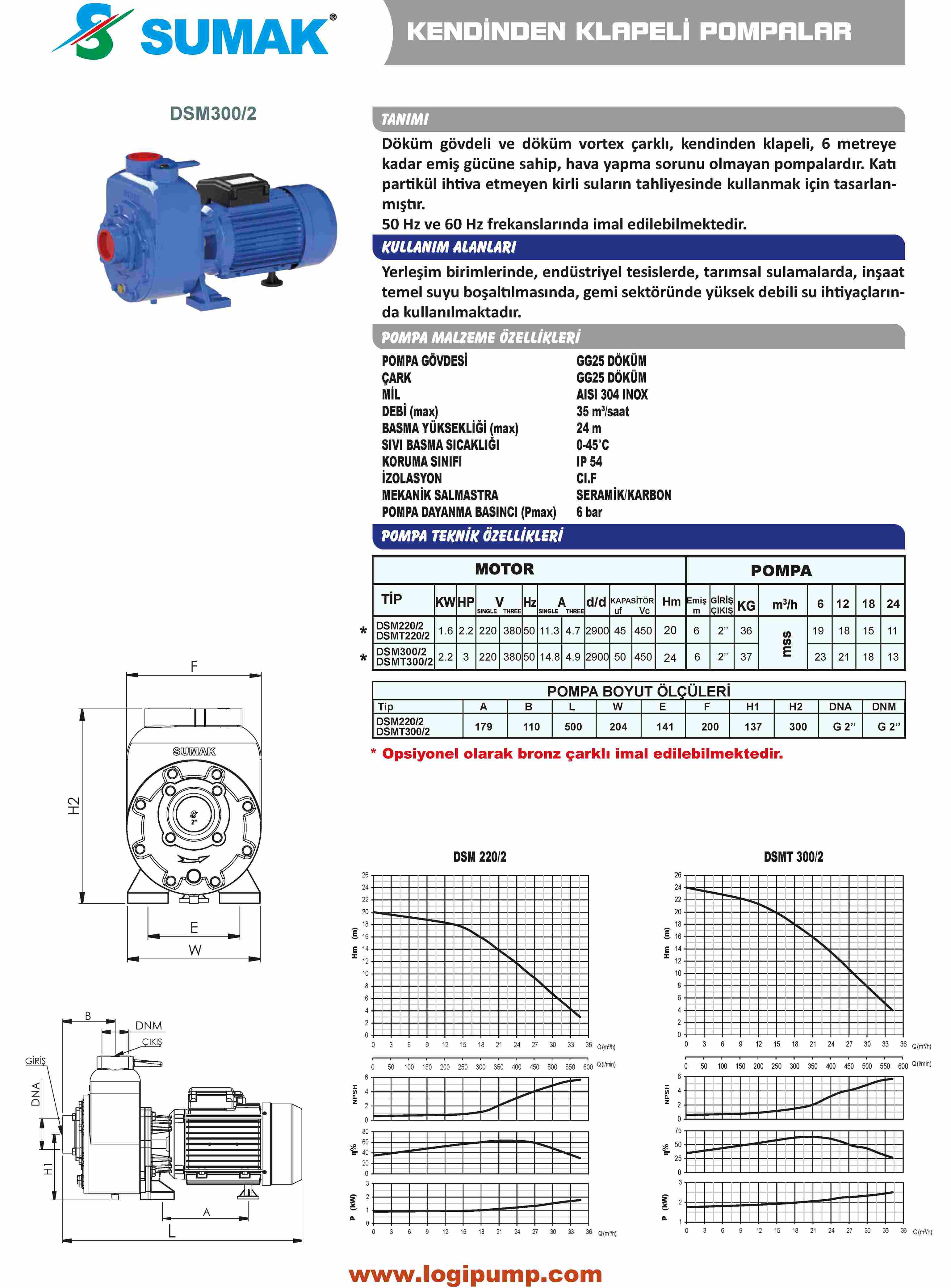 SUMAK DSM220/2 Kendinden Klapeli Atık Su Pompası | 1.6 kW - 220 V SUMAK DSMT220/2 Kendinden Klapeli Atık Su Pompası | 1.6 kW - 380 V SUMAK DSM300/2 Kendinden Klapeli Atık Su Pompası | 2.2 kW - 220 V