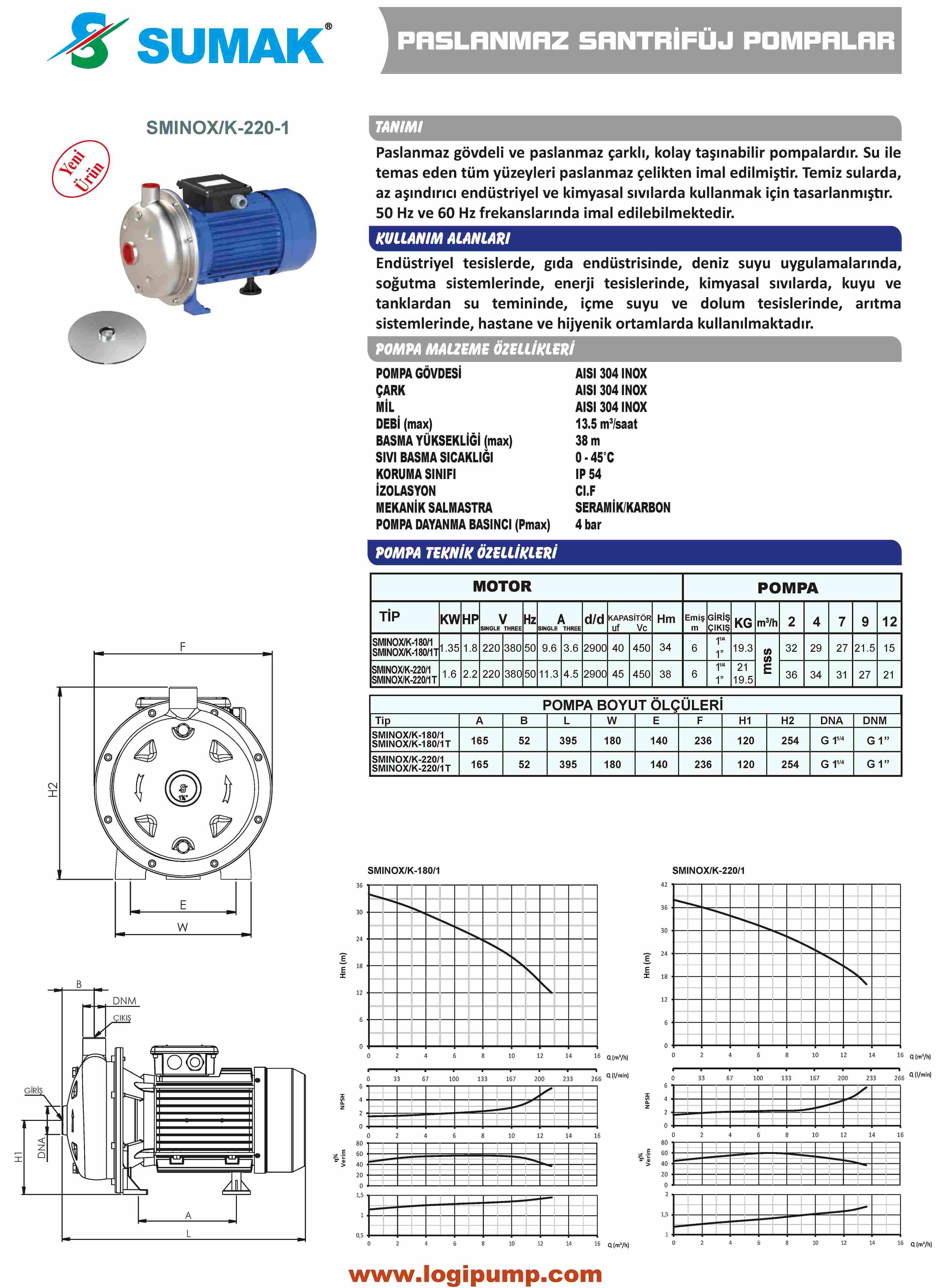 SUMAK SMINOX/K-180/1 Aısı 304 Kapalı Çarklı Pompa | 1.35 kW - 220 V SUMAK SMINOX/K-180/1T Aısı 304 Kapalı Çarklı Pompa | 1.35 kW - 380 V SUMAK SMINOX/K-220/1T Aısı 304 Kapalı Çarklı Pompa | 1.6 kW - 380 V