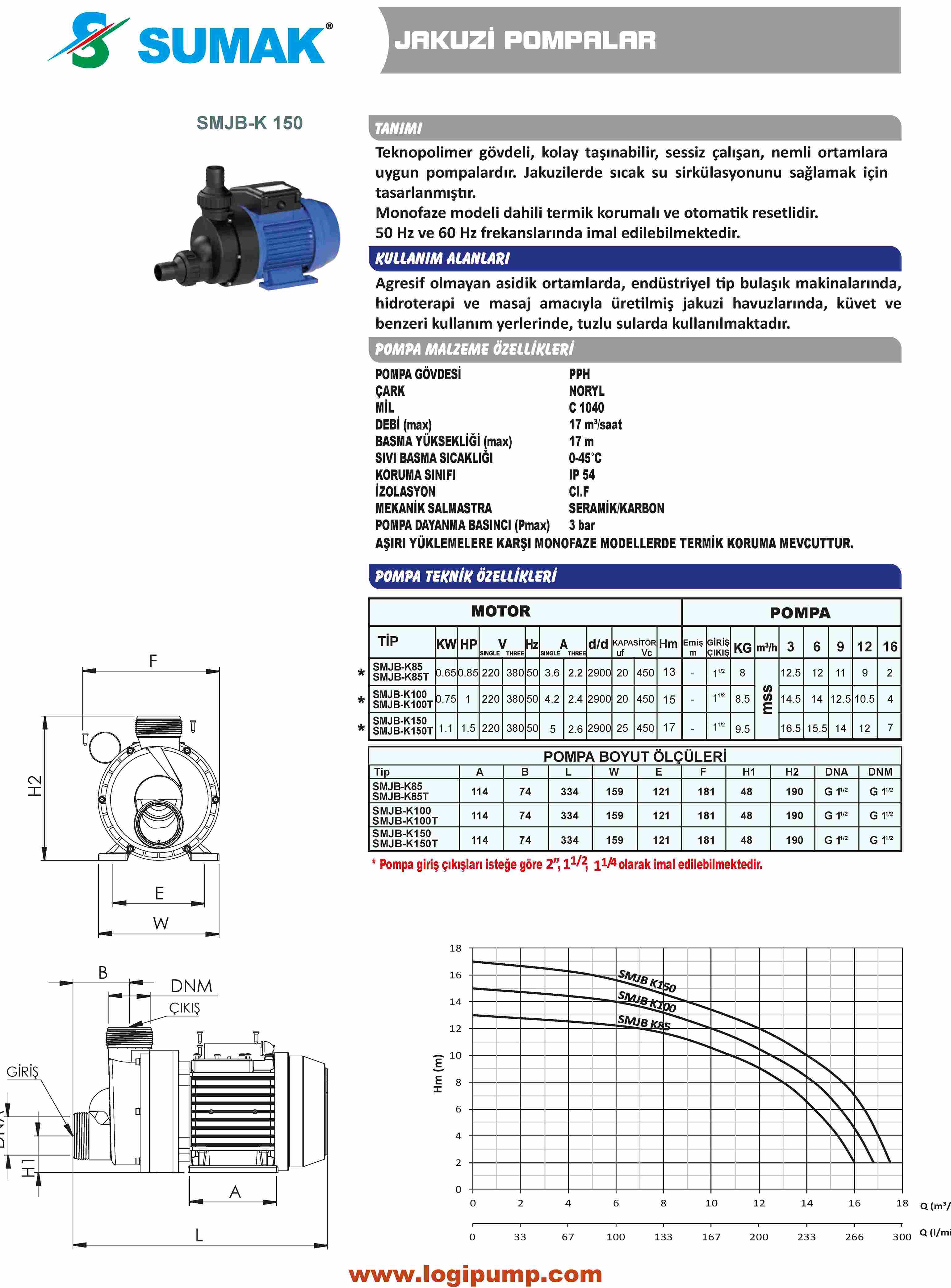 SUMAK SMJB-K85 Jakuzi Pompası - Plastik | 0.65 kW - 220 V SUMAK SMJB-K85T Jakuzi Pompası - Plastik | 0.65 kW - 380 V SUMAK SMJB-K100 Jakuzi Pompası - Plastik | 0.75 kW - 220 V SUMAK SMJB-K100T Jakuzi Pompası - Plastik | 0.75 kW - 380 V SUMAK SMJB-K150 Jakuzi Pompası - Plastik | 1.1 kW - 220 V