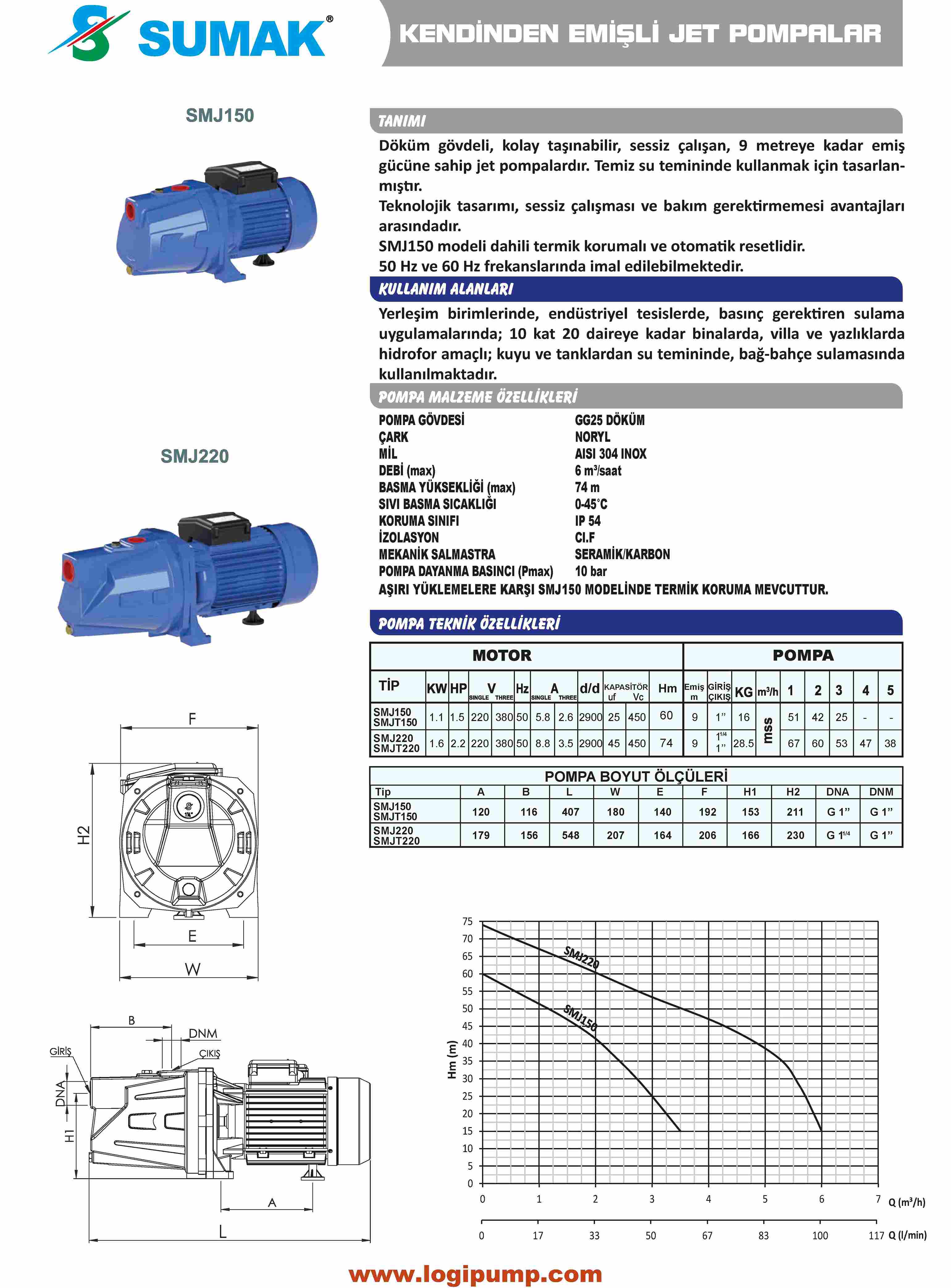 SUMAK SMJ150 Kendinden Emişli - Jet Pompa | 1.1 kW - 220 V SUMAK SMJT150 Kendinden Emişli - Jet Pompa | 1.1 kW - 380 V SUMAK SMJ220 Kendinden Emişli - Jet Pompa | 1.6 kW - 220 V