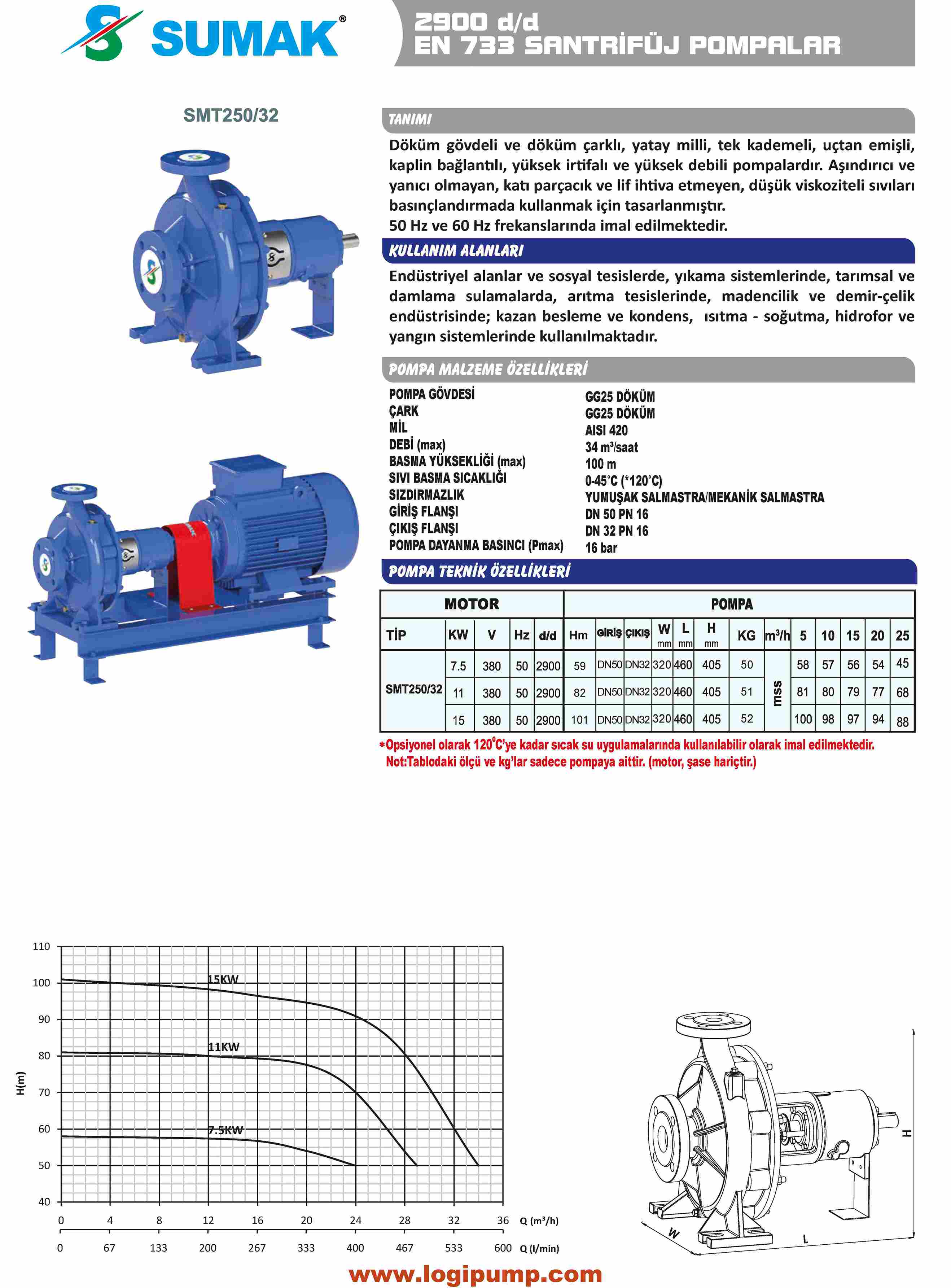 SUMAK SMT250/32-7.5 En 733 Santrifüj Pompa 2900 D/D | 7.5 kW - 380 V