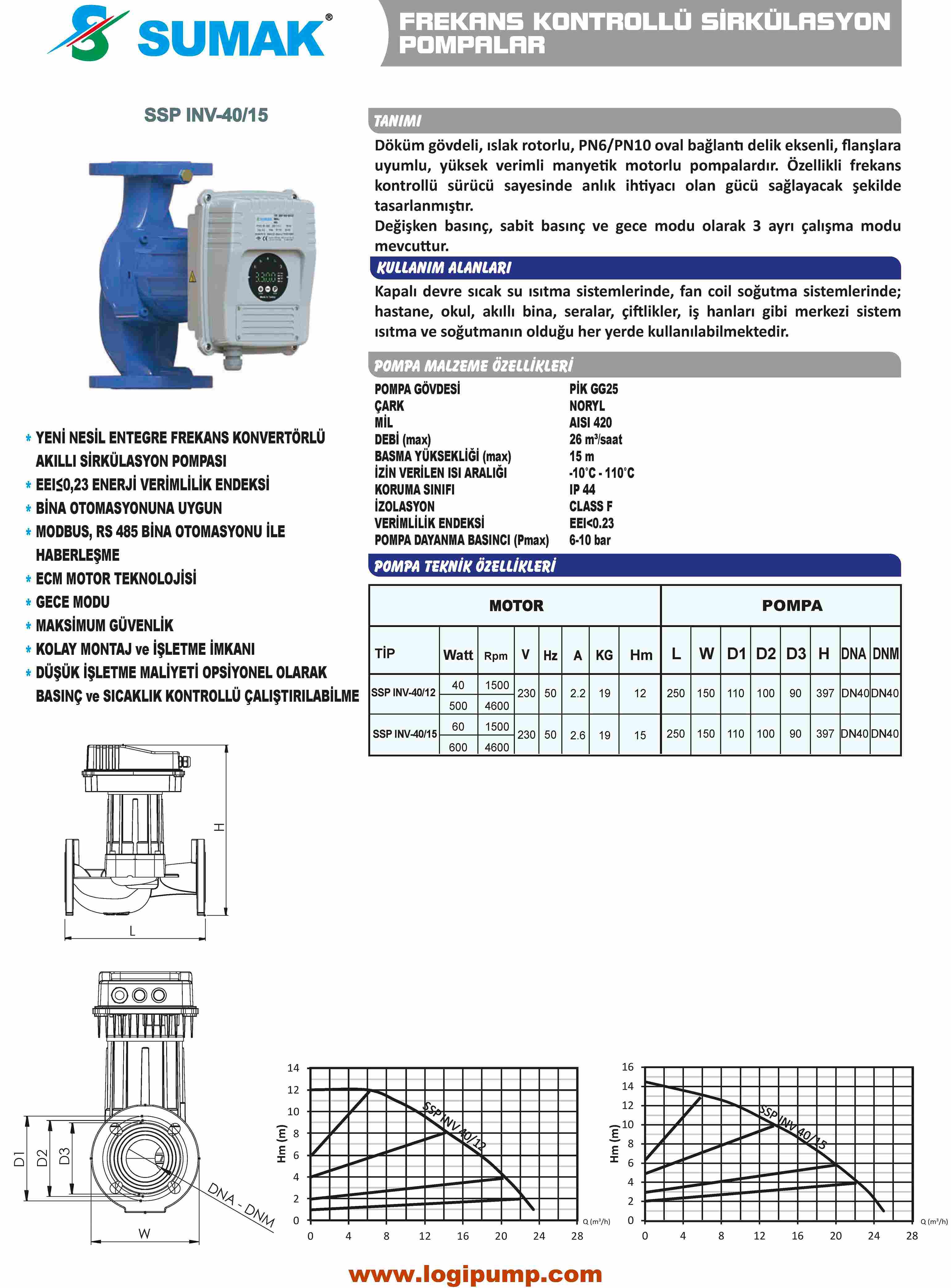 SUMAK SSP INV 40/15 Frekanslı Sirkülasyon Pompası | 60 kW - 220 V