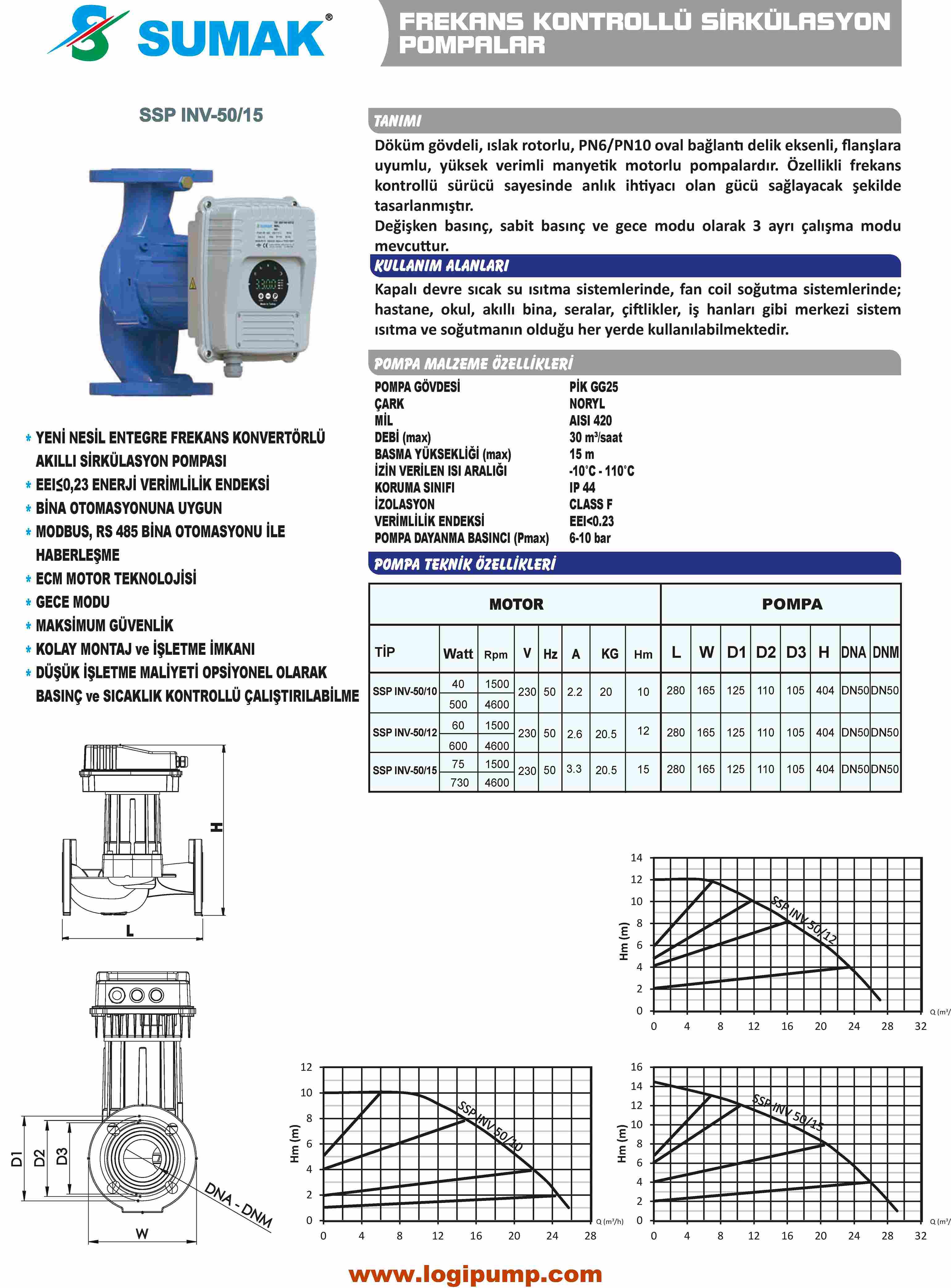SUMAK SSP INV 50/12 Frekanslı Sirkülasyon Pompası | 60 kW - 220 V SUMAK SSP INV 50/15 Frekanslı Sirkülasyon Pompası | 75 kW - 220 V